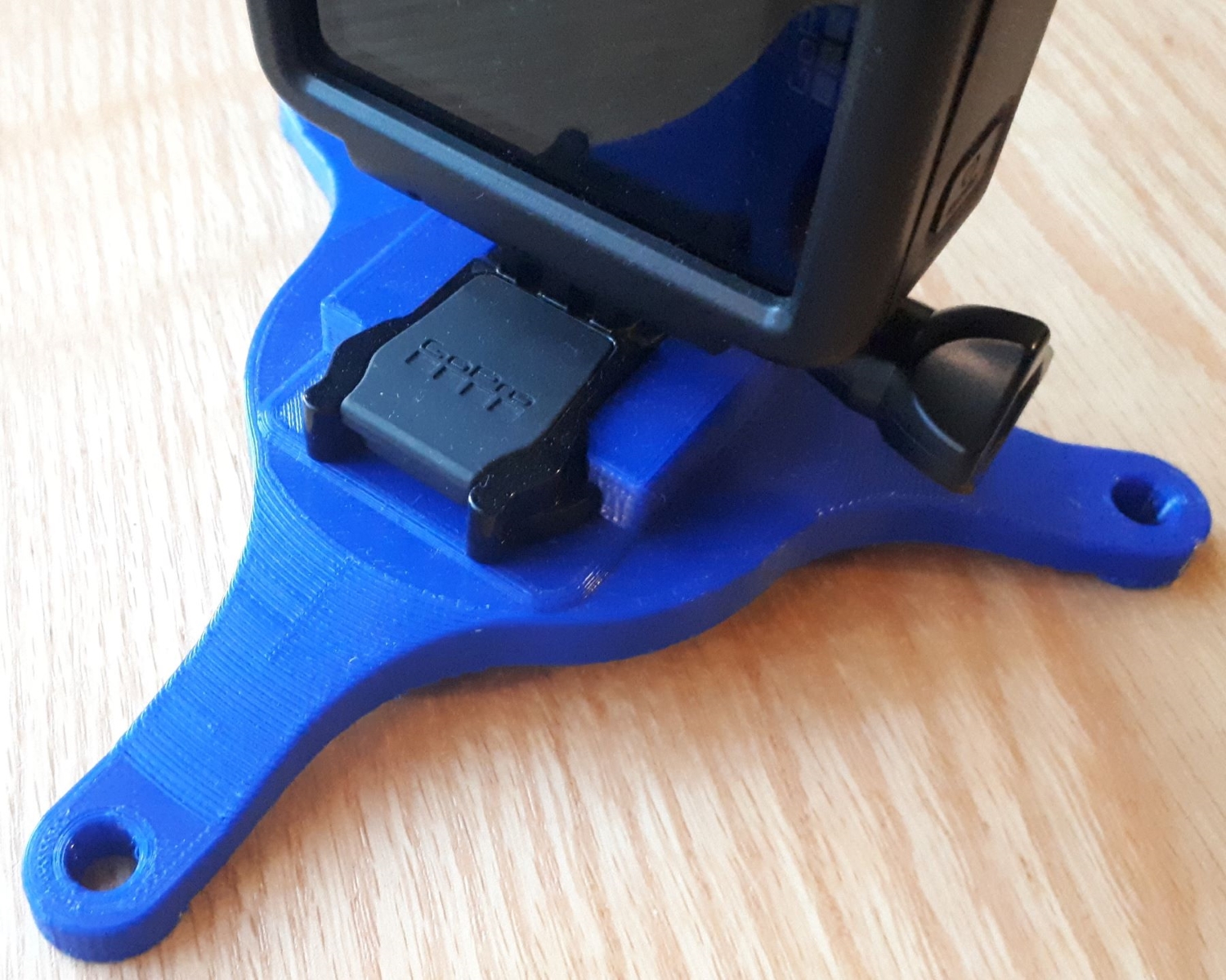 The low profile tripod provides a stable base for the GoPro in situations where the camera needs to be low and looking upwards or when there is already a platform to place it on. The tripod was designed in Fusion 360 and 3D-printed on our Ender 3 Pro. We measured an existing hand-held GoPro mount to get the critical dimensions, and did a couple of prototypes to confirm the fit before committing to the 4-hour 3D-print.